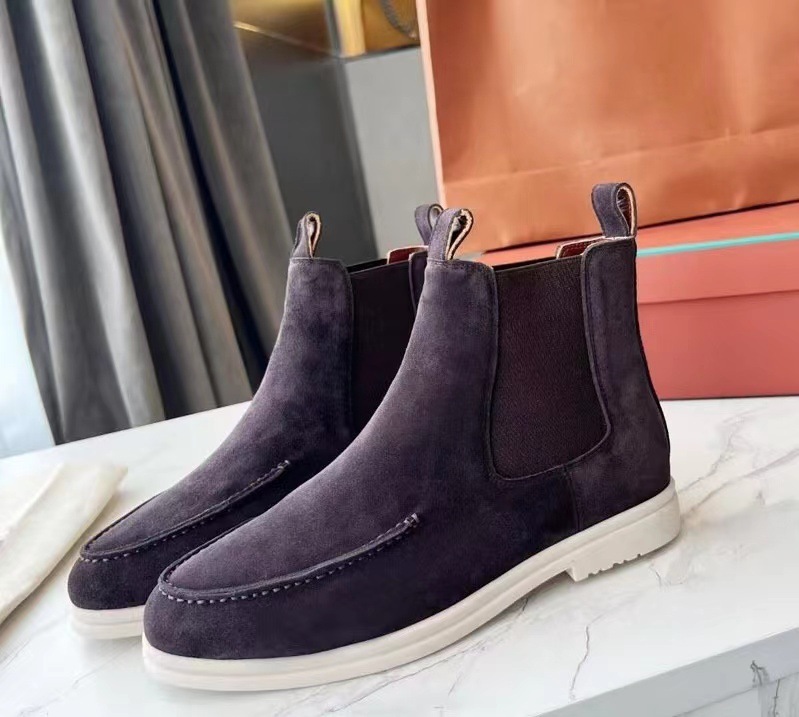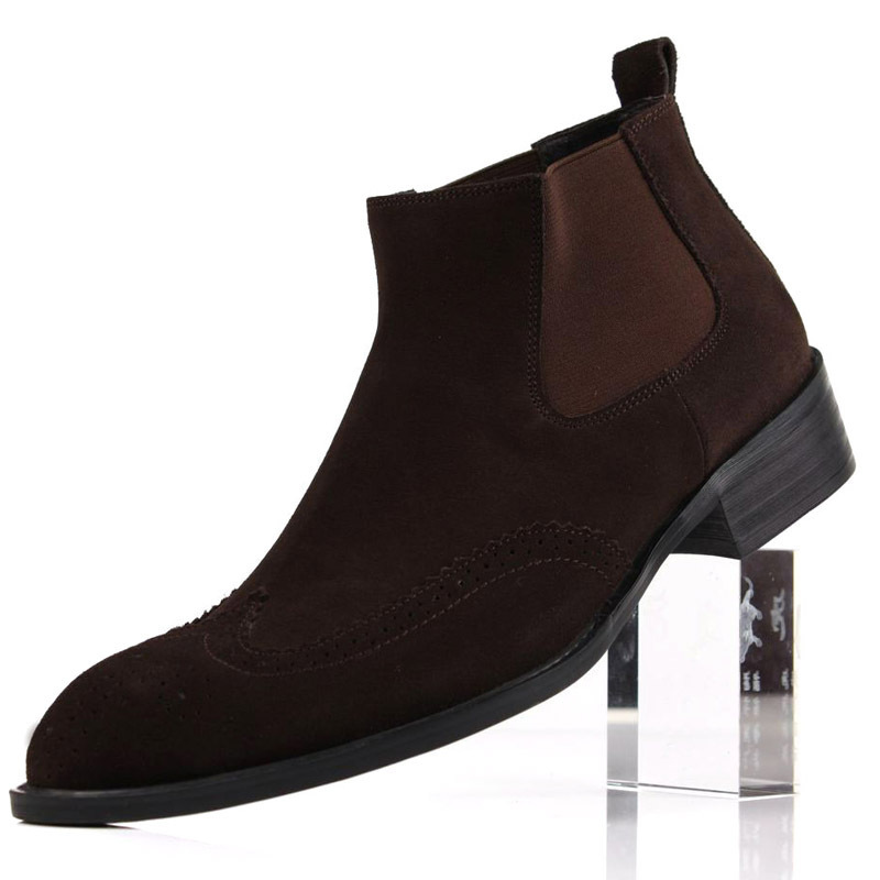 Men's Genuine Suede and Leather Slip-on Brogue Boots